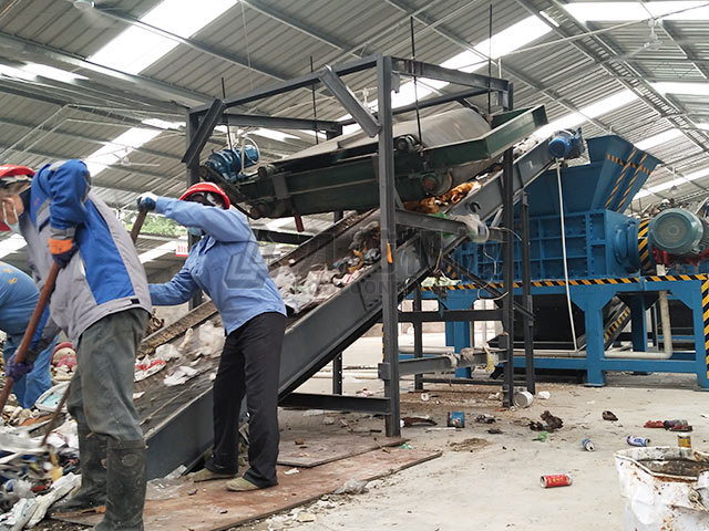 大件垃圾破碎機可以對大件沙發(fā),床墊,家具,衣柜等進行撕碎與減容。撕碎工藝主要包括撕碎—篩分—除鐵—風選等幾道工序。